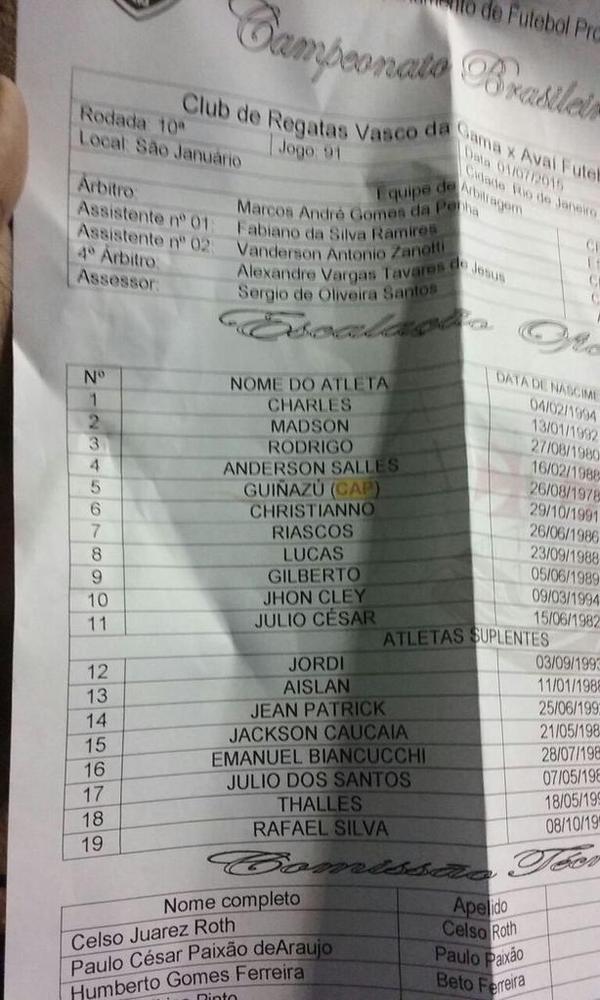 Escalação Vasco!