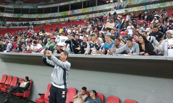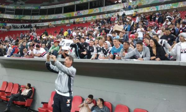 Bruno Lima @BrunoLimaTUPI Bigode tirando selfie com os torcedores.