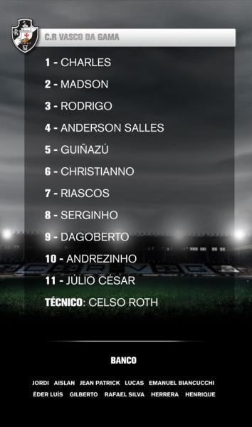 Escalação Vasco: Charles, Madson, Rodrigo, Anderson Salles, Christiano; Guiñazu, Serginho, Júlio César, Andrezinho; Riascos e Dagoberto.