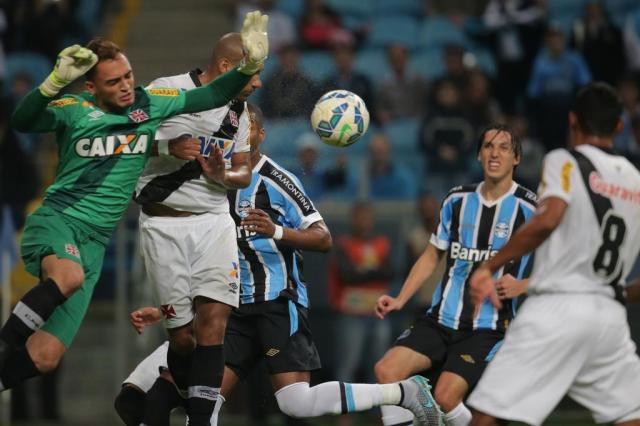 Montado num 4-2-3-1 com o lateral Júlio César atuando como meia, o Vasco tentou ocupar o campo gremista nos minutos iniciais. O zagueiro Rodrigo, em falta batida de muito longe, obrigou Marcelo Grohe a espalmar pela linha de fundo aos quatro minutos. Aos sete, o Grêmio respondeu com Marcelo Oliveira, que tabelou com Pedro Rocha e bateu cruzado para defesa de Charles.
