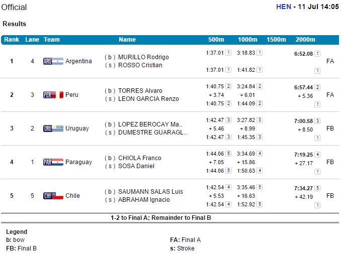 Um dos argentinos do Vasco que competem no Pan-Americano de Toronto, Cristian Rosso se classificou para a final do double skiff neste sábado (11/07), ao lado do compatriota Rodrigo Murillo. A disputa da medalha de ouro será na próxima segunda-feira (13/07) às 10h45, horário de Brasília.