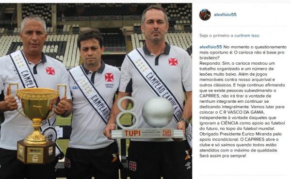 Fonte: Instagram do coordenador científico do Vasco Alex Evangelista