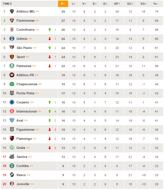 O Gigante da Colina está a 30 pontos do líder (Atlético-MG), a 17 pontos do G4 (Grêmio, 4º colocado) e a 4 pontos do 1º time fora da zona do rebaixamento (Flamengo, 16º colocado).