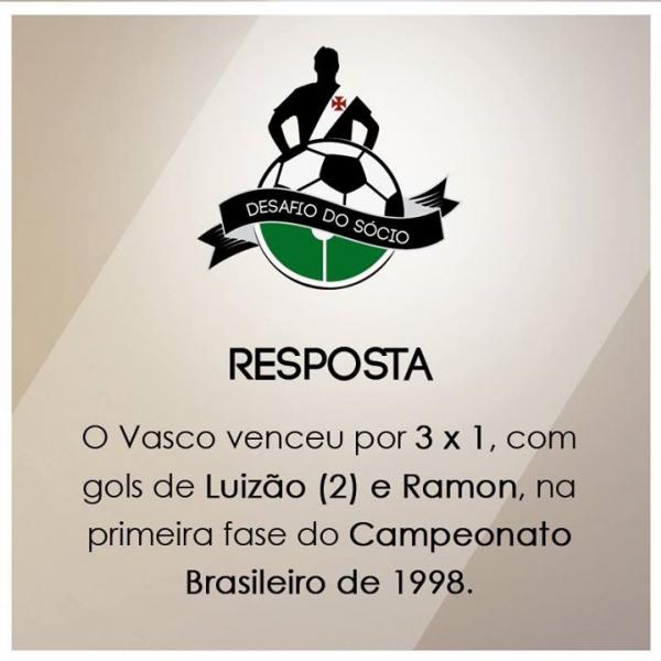 R: O Vasco venceu o América-RN por 3 x 1, com gols de Luizão (2) e Ramon, na primeira fase do Campeonato Brasileiro de 1998.