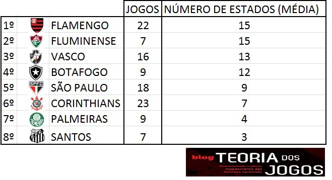 É lógico que, no tocante ao alcance de uma transmissão, números absolutos podem traduzir pouco. Alguns estados do Norte ou Nordeste, pequenos e pouco populosos, inflam estatísticas e não impactam significativamente sob a ótica do poder aquisitivo. Tendo claro que nem sempre “mais” é “melhor”, parece fato que numa federação formada por 27 estados, a penetração dos clubes do Rio de Janeiro destoa, chamando bastante atenção.