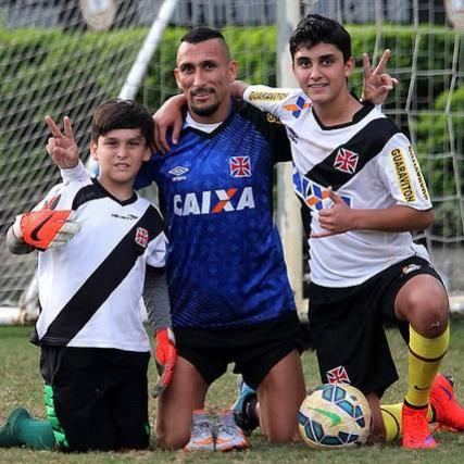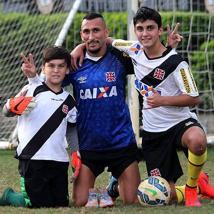 Vasco da Gama Guiñazu posa com seus filhos no treinamento desta sexta na Colina