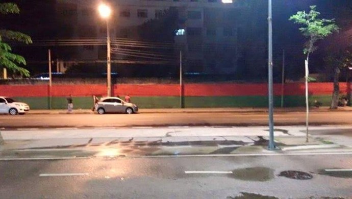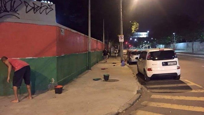 Em uma tentativa de marcar o território tricolor, torcedores do Fluminense pintaram de verde e vermelho um muro localizado em frente ao estádio, na Rua Eurico Rabelo. Próximo a uma entrada que será destinada aos torcedores do Flu.
