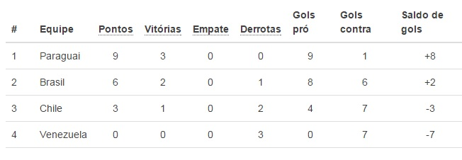 Com a vitória a seleção brasileira termina a fase de grupos na segunda colocação com seis pontos e assim se classifica para a final do torneio, que acontecerá na próxima segunda-feira (20), onde enfrentará a invicta seleção do Paraguai que mais cedo bateu o Chile, também por 3×0.
