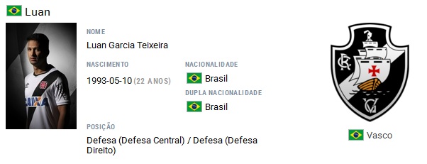 Internacional pelas seleções jovens do Brasil, Luan, de 22 anos, representa o Vasco da Gama desde sempre, tendo esta temporada apontado quatro golos em 26 partidas.