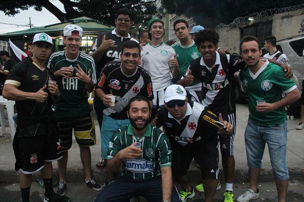 Clima é de confraternização entre torcedores de Vasco e Palmeiras