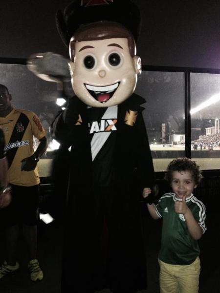 Felippe Costa @felippecosta1 Clima de paz em São Januário. Menino palmeirense tira foto com mascote do Vasco #trcolina