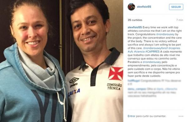 Essa semana tive o prazer de indicar o departamento de fisioterapia do Vasco á campeã do UFC, Ronda Rousey, que já se encontra no Rio para seu próximo desafio nesse sábado no Maracanãnzinho. Ronda, que é treinada por Ryron Gracie, neto do nosso saudoso Grande Mestre Helio Gracie, recebeu os cuidados do fisioterapeuta vascaíno Alex Evangelista.