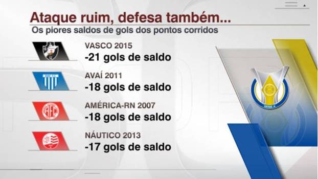Para mudar a situação atual, o Vasco precisa melhorar seus números. A equipe tem o segundo pior ataque da primeira divisão com oito gols marcados, um a mais do que o lanterna da competição e pior defesa com 2 gols sofridos. Com isso, a equipe comandada por Celso Roth tem um saldo negativo de 21 gols, o pior entre todas as equipes.