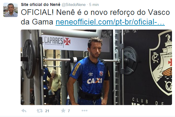 Nenê posta foto com a camisa do Vasco em seu Twitter e site oficiais