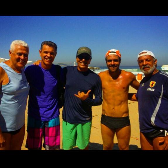 Dinamite posta foto na praia ao lado de Edinho, Júnior e o músico Evandro Mesquita
