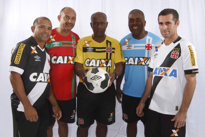 Em homenagem aos 100 anos, convocamos os funcionários do Departamento de Futebol a participar das fotos com os novos uniformes. Na foto (esquerda p/ direita), os massagistas Sebastião Freire, Paulo César e Marcio Jacó, o roupeiro Nilton Lima e o auxiliar de serviços gerais Sávio. #100anosdeFutebol #Vasco #Umbro