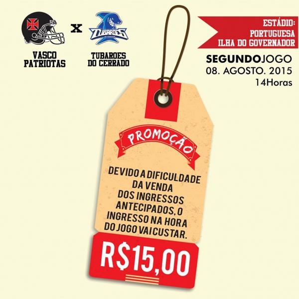 O Vasco Patriotas vai para seu segundo jogo no Torneio Touchdown. Desta vez o adversário é o Tubarões do Cerrado.