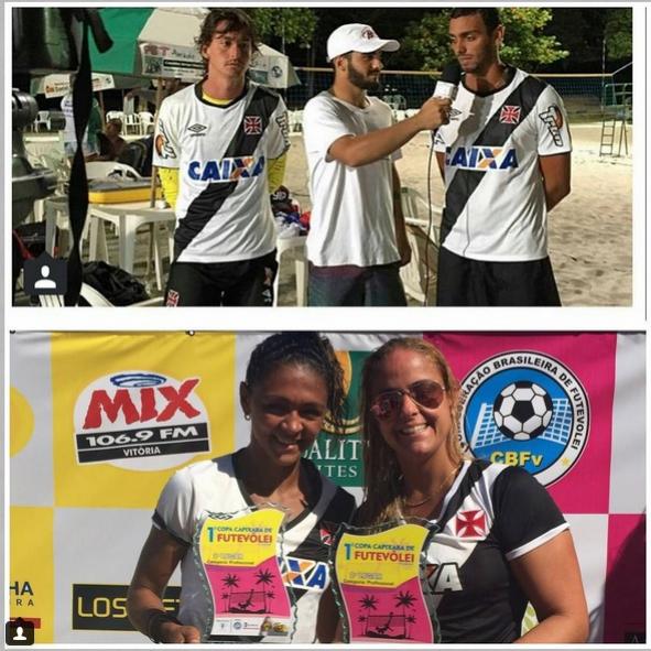 Na semana passada, nossas duplas de Futevolei conquistaram mais dois títulos para o Vasco. No Masculino, @eduardinhoemarcellinho venceram o Flamengo e conquistaram a terceira etapa do Circuito Carioca da Copa Hillo e garantiram o título geral antecipado. Já nossas meninas @josyetaissafootvolley vemceram a Copa Capixaba, mantendo a hegemonia no esporte. Parabéns para os nossos craques! #Expresso7 #GiganteChegou #ArenaAkxe #FutevoleiVencedor