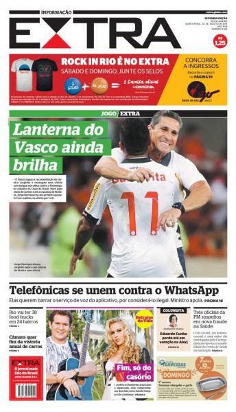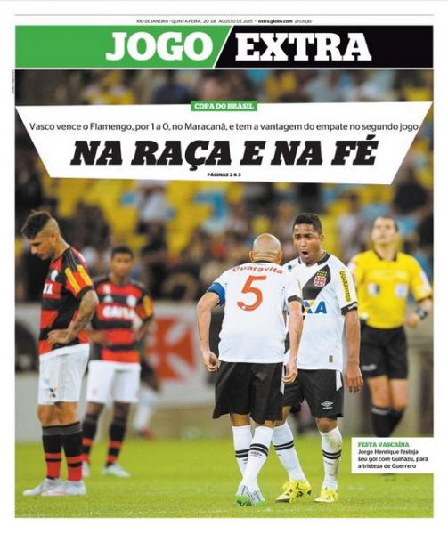 Veja como a imprensa carioca destacou a vitória do Vasco sobre o Urubu