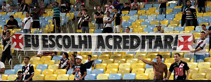 ![]() Torcida do Vasco acredita na virada do time, que conquistou apenas 13 pontos até agora no Campeonato Brasileiro. Clube ganhou ânimo maior após derrotar o Flamengo pela Copa do Brasil na quarta-feira |