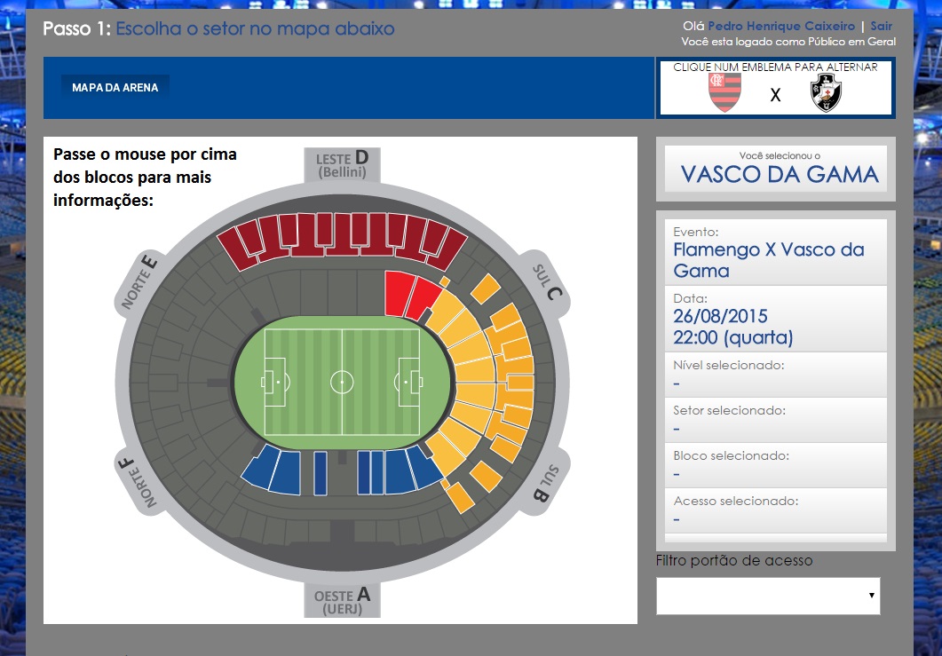 A imagem abaixo mostra a situação dos ingressos do Vasco agora, 15hrs.