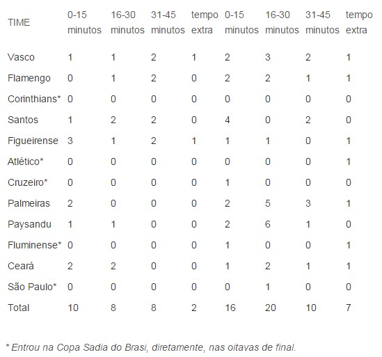 Confira a tabela com a hora do gol na Copa do Brasil: