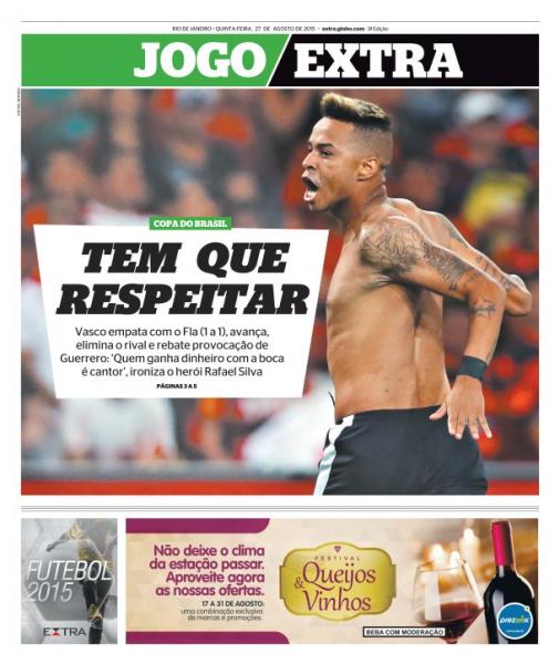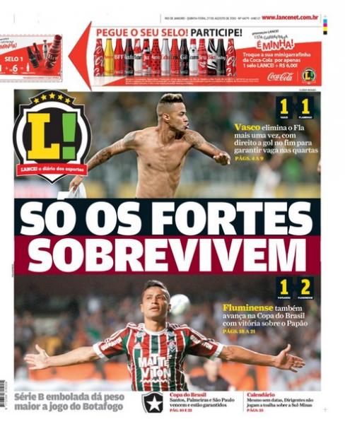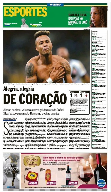 Veja como a imprensa carioca destacou a classificação do Vasco na Copa do Brasil contra o Urubu