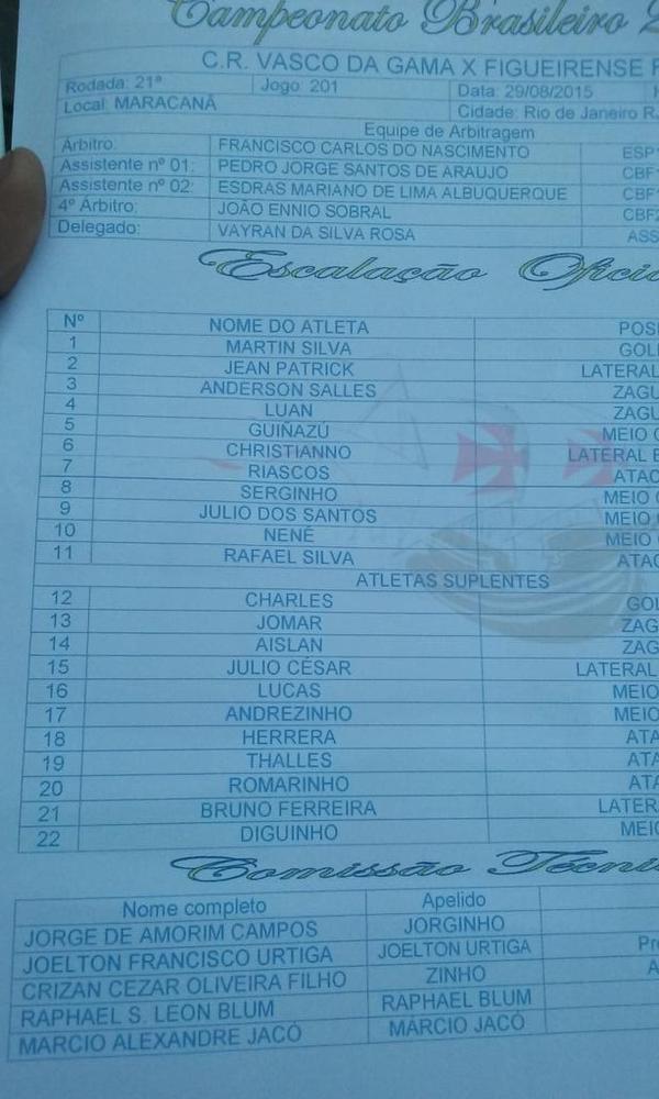 Confira escalação oficial do Vasco; Jean Patrick, Luan e Rafael Silva são titulares