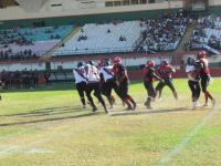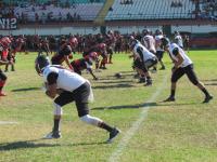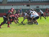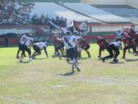 Mantendo o bom ritmo no ataque, o Vasco ampliou com o WR# Ruda livre na endzone - extra point convertido pelo K# Ryan. Com facilidade, o atual campeão do Torneio aproveitou seu domínio ofensivo e com outra corrida, desta feita com o RB# Romulo, pelo lado direito da defesa rubro negra, o time chegou ao terceiro touchdown na partida - extra point convertido pelo K# Ryan.