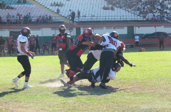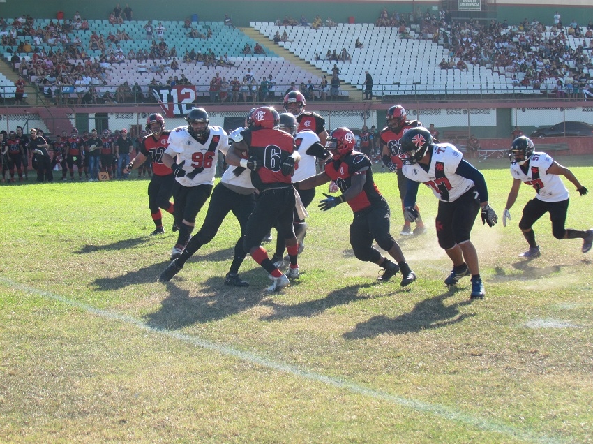 Debaixo de muito calor e um sol forte, Vasco e Flamengo fizeram neste domingo, 30/08, no estádio Luso Brasileiro na Ilha do Governador, o principal jogo da rodada, do Campeonato Brasileiro de futebol americano. Assim como no futebol, eliminando o rival no Maracanã, na última quarta-feira, 26/08, da Copa do Brasil, o Vasco da Gama/Patriotas não tomou conhecimento do adversário da bola oval e afundou o rubro-negro no grupo B, vencendo por 28x26.