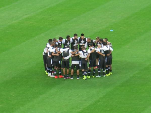 Raphael Zarko @raphazarko Time do Vasco fez uma corrente em campo quando entrou para o aquecimento #trbeirario