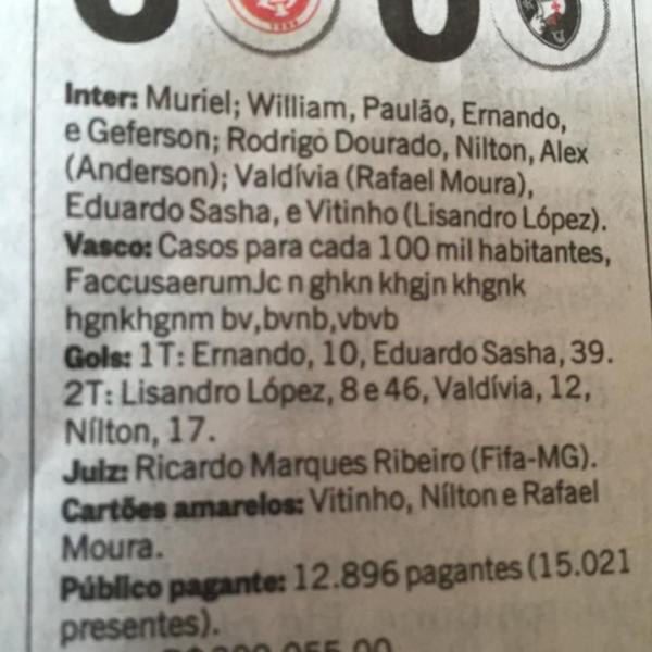 Bruno Mazzeo Oficial Obrigado ao jornal O Globo que, para proteger os olhos dos seus torcedores, evitou publicar a escalação do time de ontem: