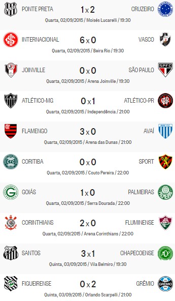 Terminada a 21ª rodada do Campeonato Brasileiro, o Vasco, que perdeu para o Internacional por 6 a 0, continuou na 20ª e última colocação na competição.