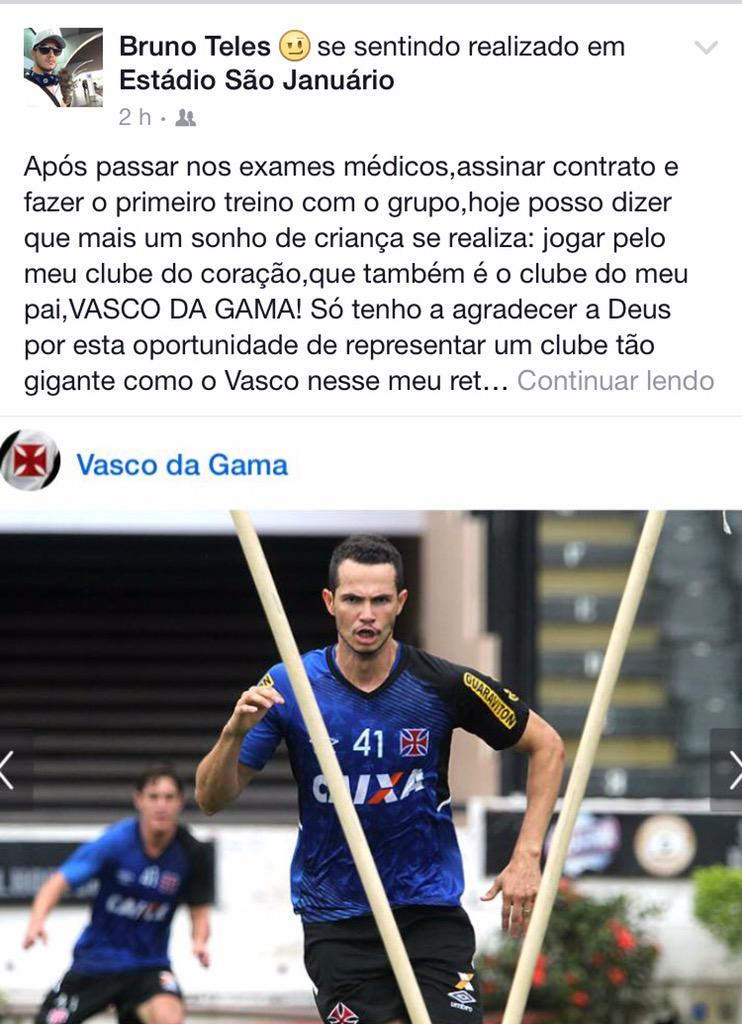 FD Assessoria @FDassessoria Lateral @brunoteles_6 faz 1o treino no Vasco, assina até fim do ano e confessa: "Jogo pelo meu clube do coração"