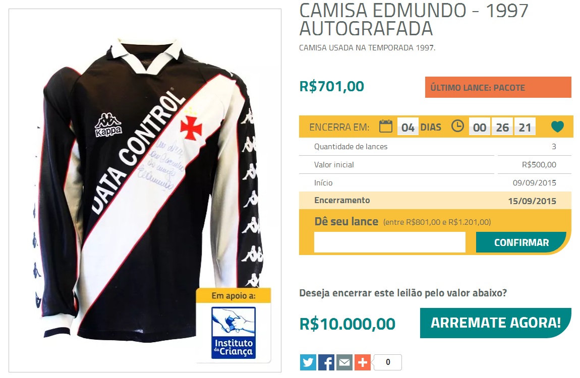 Esta camisa é legítima e foi usada pelo ex-atleta Edmundo em jogo na temporada 1997.