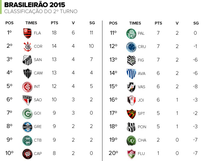 Vasco está em 15º lugar na classificação do returno do Campeonato Brasileiro