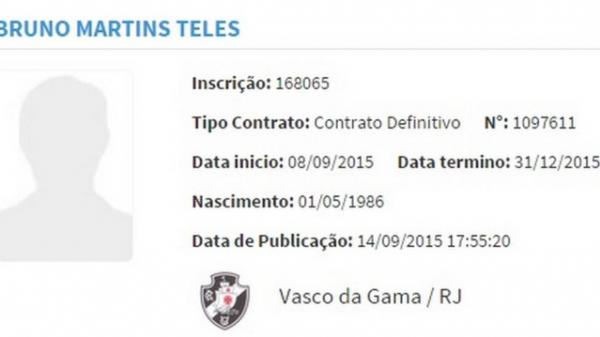 O nome do lateral-esquerdo Bruno Teles, do Vasco, apareceu no BID (Boletim Informativo Diário) da CBF nesta segunda-feira e ele já pode fazer a sua estreia pelo Vasco. Ele foi a última contratação do Cruz-Maltino para a sequência do Campeonato Brasileiro.