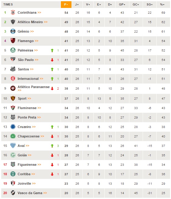 Confira a classificação:
