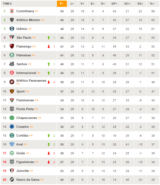 Terminada a 26ª rodada do Campeonato Brasileiro, o Vasco, que empatou com o Cruzeiro por 2 a 2, segue na 20ª e última colocação na competição.