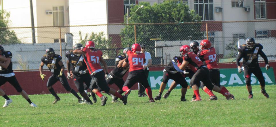 Ainda no primeiro quarto, numa conexão de 25 jardas, o QB# Lucas Shaw achou o WR# Tiago Barbosa livre para marcar - extra point convertido pelo K# Ryan Homem. Em novo erro da equipe mineira, o mesmo DT# Costão aproveitou para conseguir outro safety para os cariocas. Mais tarde foi a vez do WR# Lipe anotar o seu touchdown para mais de 70 jardas, após nova conexão executada pelo QB# Lucas Shaw - extra point convertido pelo K# Ryan Homem.