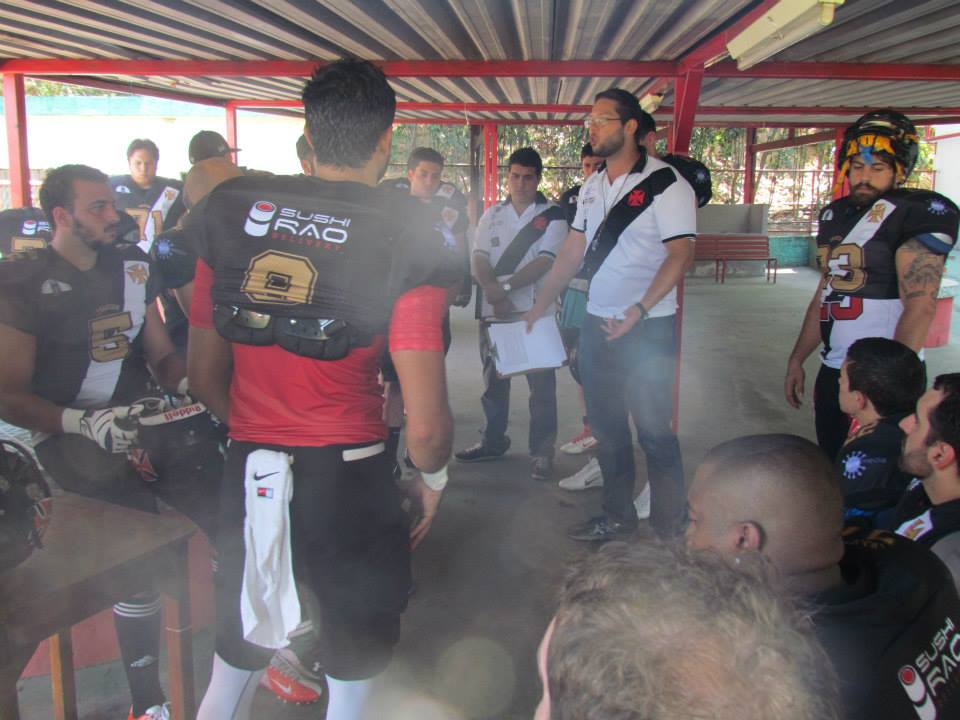Debaixo de sol forte e muito calor, o cruzmaltino praticamente fez um treino de luxo contra os mineiros, com um time bem mesclado, visando o clássico contra o T-Rex. Logo no início do primeiro tempo JP recebeu ótima enfiada de bola do Lucas e abriu o placar marcando touchdown. Ryan com a categoria de sempre converteu o extra point. 7x0. Erro do punter do Minas ao receber um passe ruim, ajoelhando dentro da própria end zone e mais dois pontos para o Vasco.