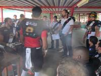 ![]() O fundador do time Felipe Neves, de boné laranja, se emocionou com os 5 anos da equipe |