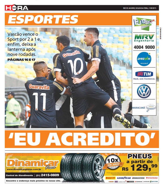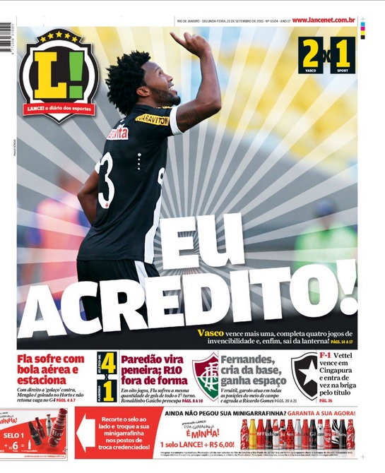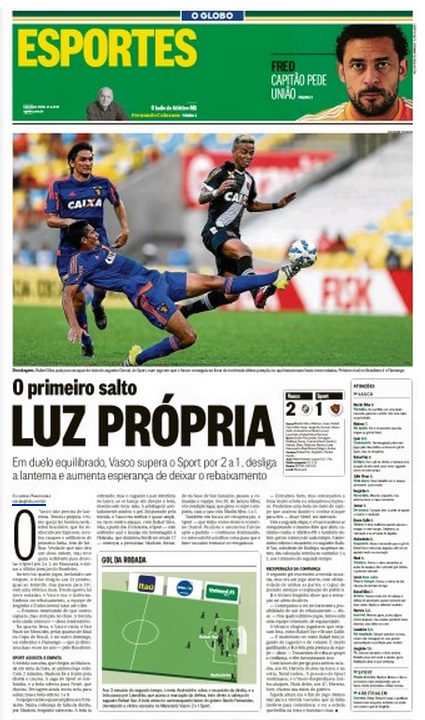 Veja como a imprensa carioca destacou a vitória do Vasco sobre o Sport
