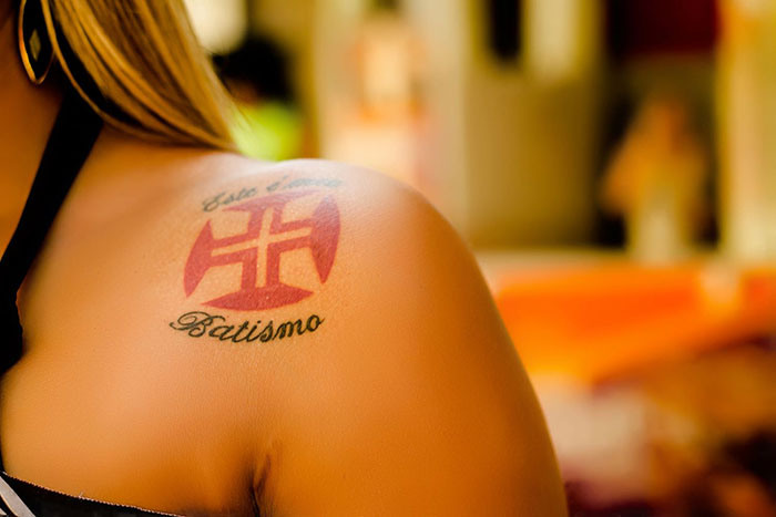 A paixão pelo Vasco da Gama é tão grande, que a loira tem duas tatuagens, uma é o desenho da cruz maltina, símbolo do time carioca e a outra são dizeres: ‘’A vida me fez Vasco e eu fiz do Vasco minha vida”.