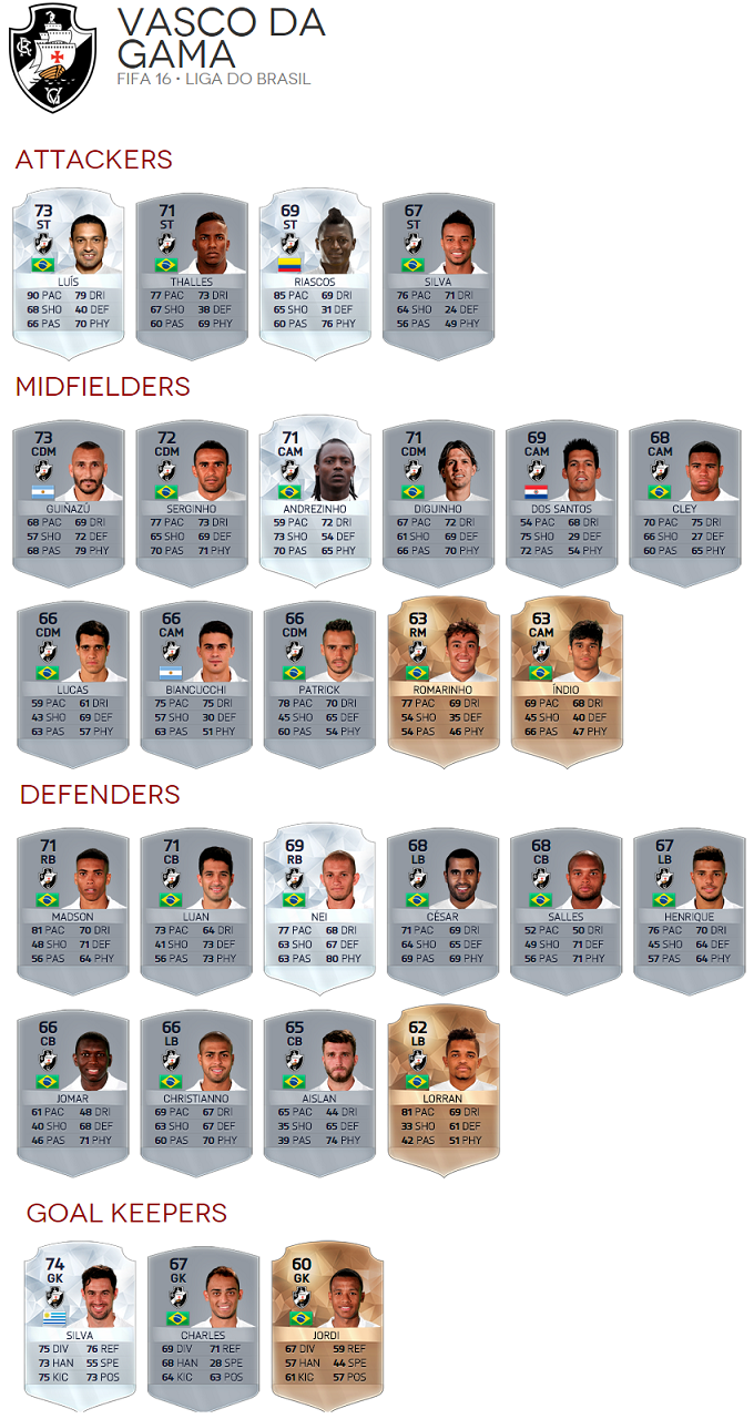 Nota da NETVASCO: Clique aqui para ver os ratings de todos os jogadores de clubes brasileiros.
