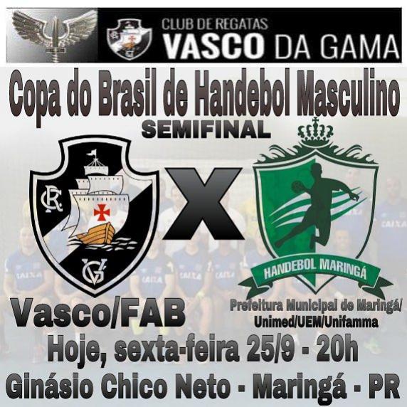 Vasco/FAB (RJ), ADJF/Independência Trade/MRS (MG), Unopar/Paiquerê FM/Blindex/Londrina (PR) e Prefeitura Municipal de Maringá/Unimed/UEM/Unifamma (PR) seguem na disputa pelo título da Copa Brasil Masculina de Handebol, no Ginásio Chico Neto, em Maringá (PR). Antes das semifinais desta sexta-feira (25), que começam as 18h, outros participantes disputam as colocações de quinto a sétimo lugares, às 16h.