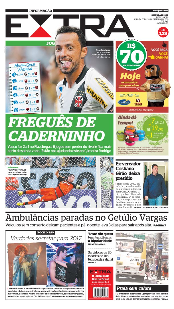 Veja como a imprensa carioca destacou a 4ª vitória do Vasco sobre o Urubu no ano