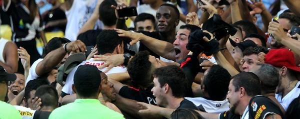 Tanto quanto o gol que garantiu a vitória de virada do Vasco por 2 a 1 sobre o Flamengo, a comemoração de Nenê chamou a atenção do público presente ao Maracanã. Após converter a cobrança de penalidade máxima, aos 16 minutos do segundo tempo, o camisa 10 literalmente se atirou nos braços da torcida cruzmaltina.
