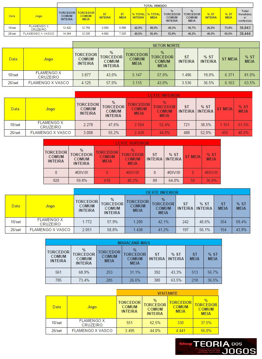 A renda de R$ 1.986.400,00 registrou aumento de 17% no ticket médio dos jogos do Flamengo (de R$ 42 para R$ 49). Em se considerando o público pagante de 40.240, isto representou um expressivo ganho adicional de R$ 300 mil. Na comparação com o último jogo do Flamengo no Maracanã (Cruzeiro), o total de meias caiu de 58% para 50,4%. Se a comparação retroagir ao Flamengo x Vasco do dia 19 de agosto, a queda é ainda mais expressiva: nada menos que 71% dos torcedores pagaram a metade naquela ocasião.