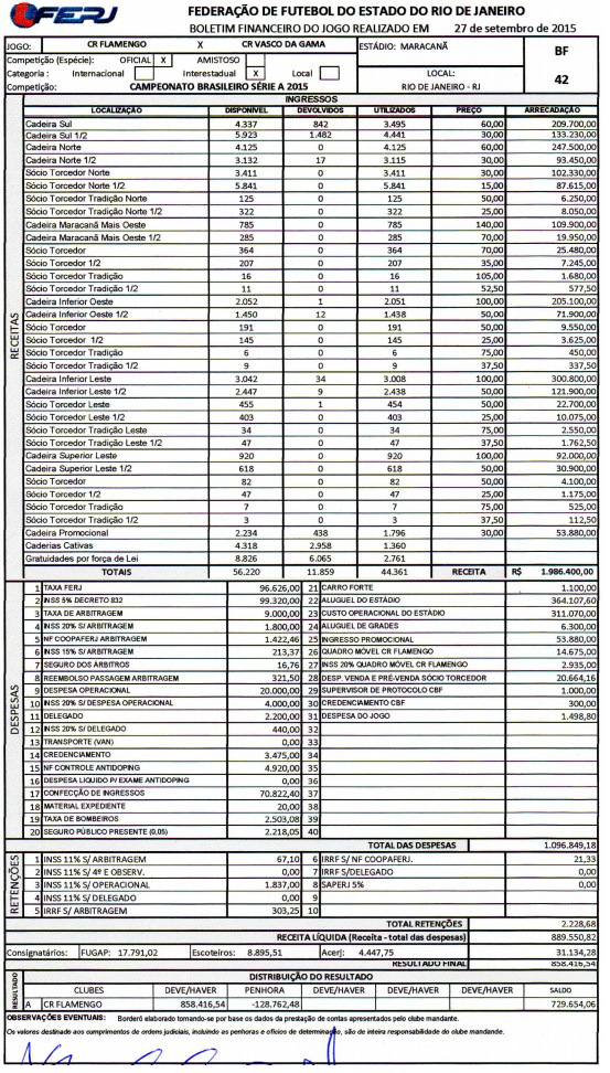 Ontem, Flamengo e Vasco fizeram o primeiro grande clássico sob a égide da nova política de fiscalização das meias entradas – anunciada há pouco mais de duas semanas. Em tempos de profunda crise econômica e dificuldades para a mera manutenção do nível das receitas, os resultados foram promissores. Abaixo, e em primeira mão, o borderô da partida: